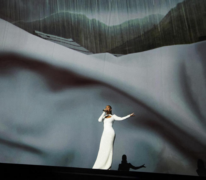 Beyonce, vêtue d’une robe longue à manches longues, d’un blanc immaculé et étincellant qui balayait le plancher, elle a tourné la version de la Journée humanitaire mondiale écrite par Diane Warrenn “I Was Here».