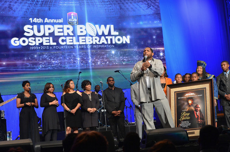 Pour clore, le joueur de NFL de l’équipe de Baltimore Ravens (qui jouera ce soir au SuperBowl), Ray Lewis a reçu l’honneur Inspiration Award. Puis, Ray Lewis est monté sur scène pour chanté avec la chorale des joueurs de NFL et qui le fait depuis plusieurs années.
