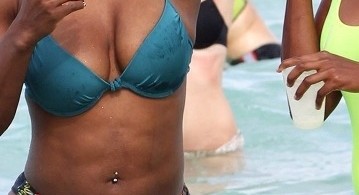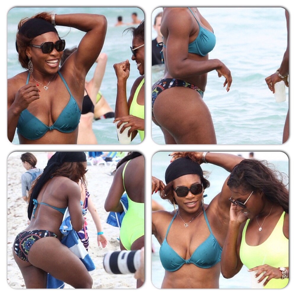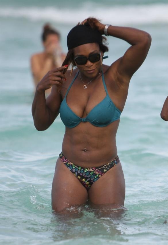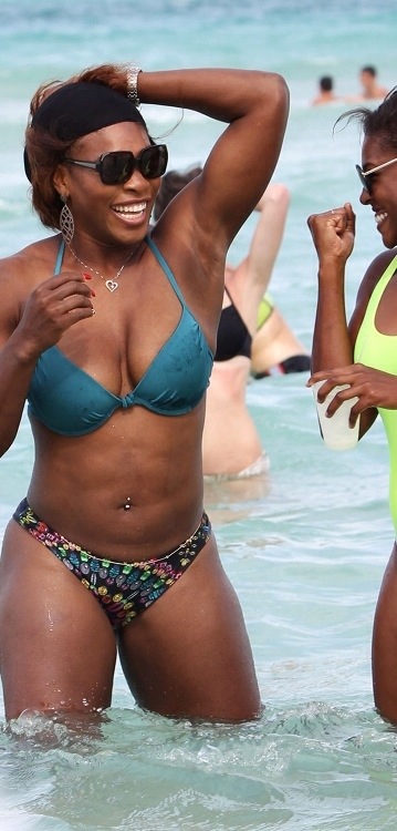 La championne de tennis Serena William a mis son foulard noir sur ses cheveux et elle s’est birn éclatée avec une amie à Miami. Elle portait un maillot de bain floral qui dévoilait son corps athlétique.
