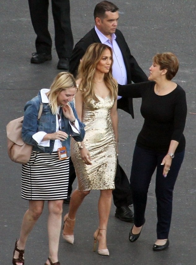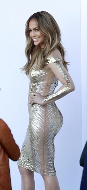 Jennifer Lopez a choisi une robe dorée pour se rendre sur le plateau de l’enregistrement de l’émission télévisée American Idol. Elle a été nommée jury de l’émission après le départ de Nicki Minaj et Mariah Carey qui ont passé leur temps à s’étriper sur tous les sujets. Les audiences étaient en chute libre.