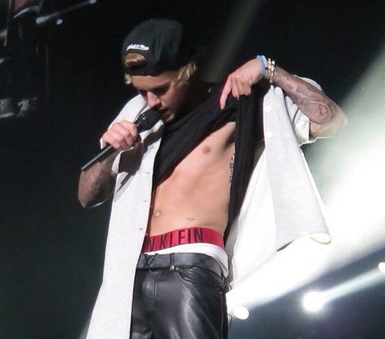 Justin Bieber était tellement excité qu’il a même soulevé son tee-shirt.