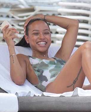 L’apprentie modèle s’esy accordée un bon momentnà Miami pour se détendre à la plage.