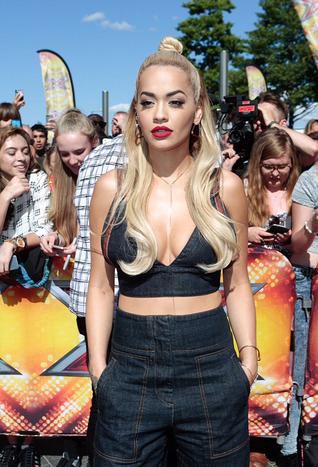 Pour les premières séances d’audition de l’émission télévisée X factor, Rita Ora a choisi une tenue noire assez sexy. Sa tenue était composée d’une brassière noire qui laissait entrevoir sa généreuse poitrine er un pantalon aux pattes larges de la même couleur.