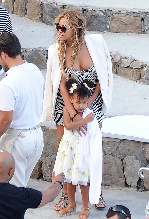 Beyonce portait une combinaison aux imprimés de zèbre du créateur Zimmermann qui dévoilait ses jambes. Elle portait une paire de sandales basses. La petite Blue Ivy Carter portait une magnifique robe et une paire de sandales d’été. Elle avait de petites couettes et une frange frontale en guise de coiffure.