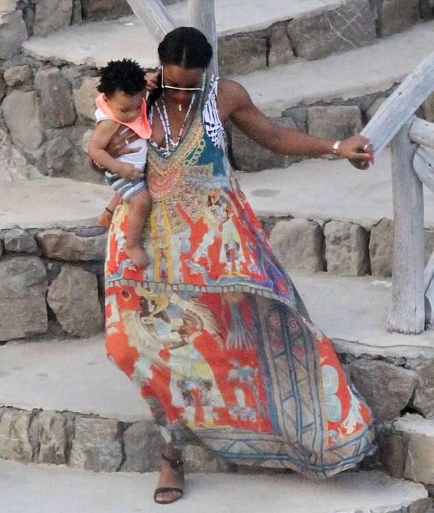 Som amie d’enfance et soeur de coeur Kelly Rowland s’est jointe à eux avec son mari et son fils, son bébé. Kelly Rowland portait une longue robe assez colorée et une paire de lunettes de soleil qui masquait son visage. Ellenavait les cheveux tirés à l’arrière avec une tresse de chaque côté.