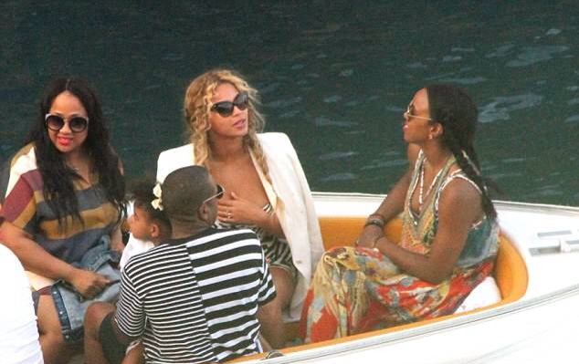 La famille de Beyonce composée de Jay Z et Blue Ivy Carter et la famille de Kelly Rowland composée de son mari Tim et du bébé Titan se somt accordé une belle ballade en mer avant de se rendre dans un prestigeux restaurant.