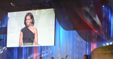 La Première Dame des Etats-Unis Michelle Obama était le conférencier principal lors du le dîner organisé au Centre des congrès pour l’édition 2012 des Congressional Black Caucus and its Foundation à Phoenix. Et comme toujours, Michelle Obama était éblouissante dans une robe noire à paillettes à une épaule de Michael Kors qui lui tenait la taille.