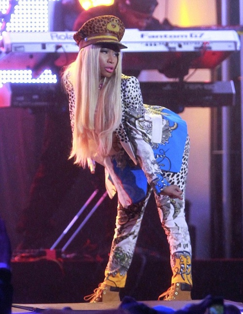 Nicki Minaj portait un ensemble de Roberto Cavalli pour le show.