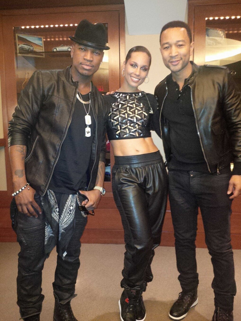Alicia Keys a décidé de mettre un pantalon noir, un tee-shirt noir à longues manches et des baskets montantes issues de sa prochaine collection Reebok pour sa performance lors de la mi-temps du match All Star Game, le match mettant en jeu les meilleurs joueurs de la saison.
