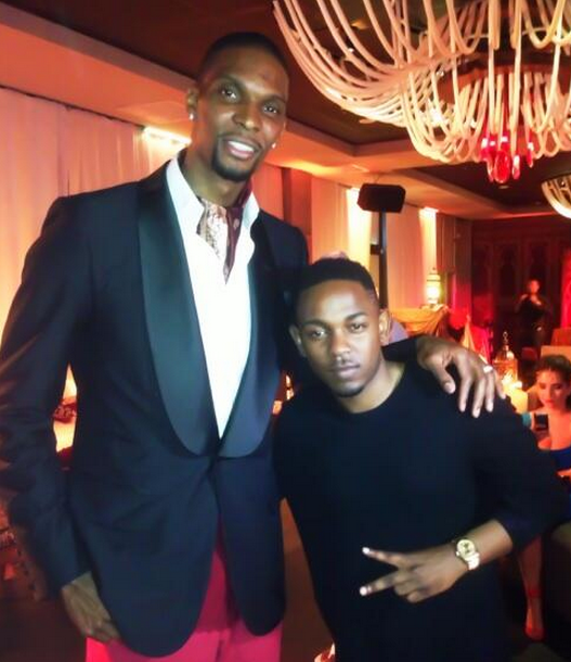 Plus tôt à la cérémonie organisée en l’honneur de Chris Bosh, Kendrick Lamar est monté sur scène pour entonner ses plus beaux tubes du moment. Puis, il a posé avec Chris Bosh.