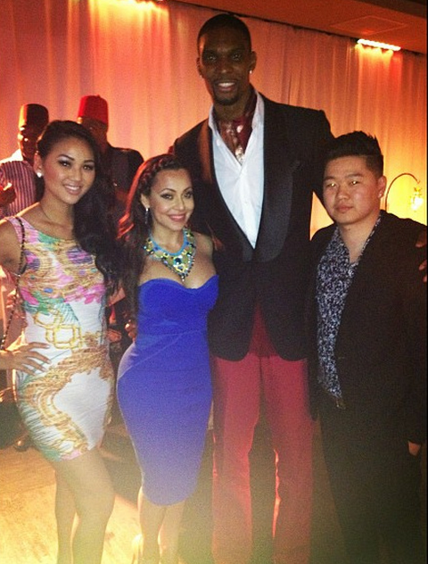 Savannah Brinson et LeBron James (co-équipier de Chris Bosh) étaient d’une humeur très festive. Un autre co-équipier de Chris Bosh, Dwyane Wade était présent pour soutenur son collègue et ami et lui souahiter un joyeux anniversaire. Juwan Howard et son adorable femme Jenine étaient aussi présents.