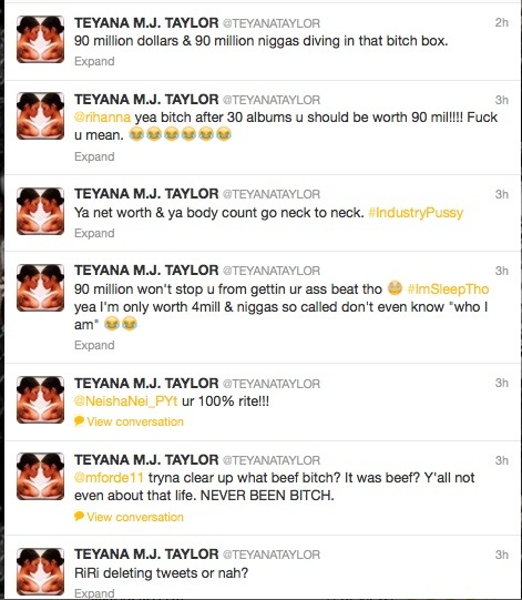 L’artiste de G.O.O.D. Music, la chanteuse Teyana Taylor a appelé la chaîne de radio Hot 97 ce matin afin de parler de Rihanna concernant leurs attaques sur Twitter.