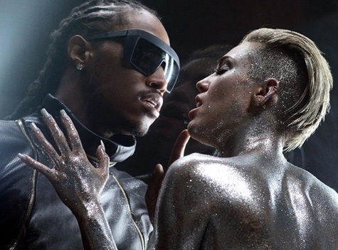 On apprend que Miley Cyrus passe son temps à se déshabiller et à jouer une allien, couverte d’une peinture métallique, pendant que Future et Mr Hudson portaient des ensembles d’astronautes.