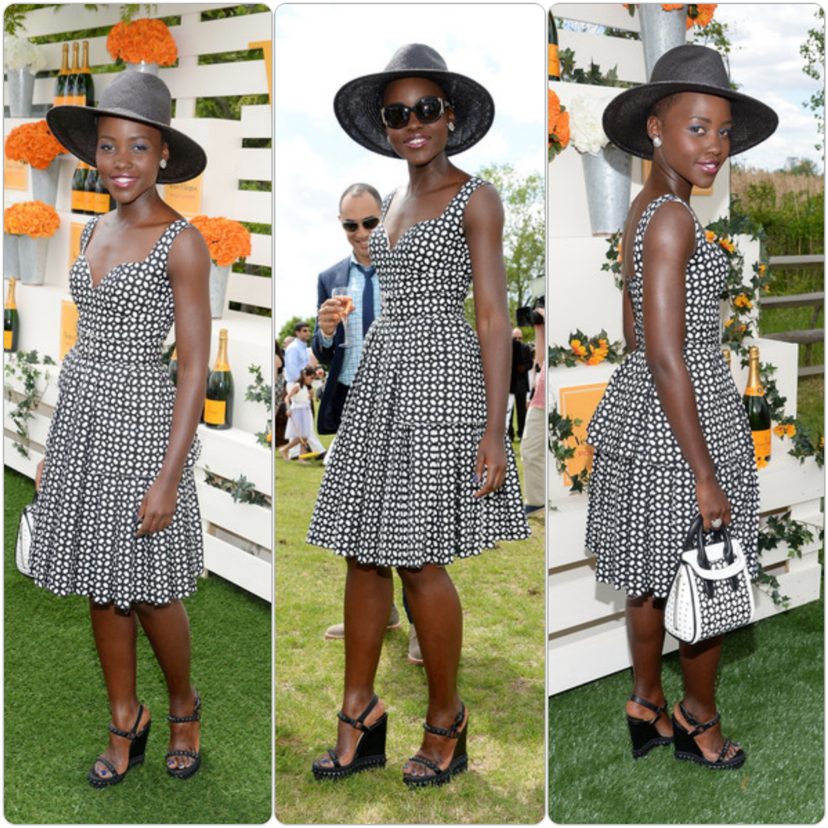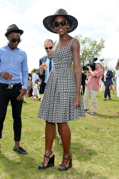 L’actrice oscarisée Lupita Nyong’o s’est rendue récemment à l’évènement Veuve Clicquot Polo Classic au New Jersey. Elle portait un large chapeau noir, une robe noire et blanche et des sandales à semelles compensées noires. Lupita a posé aux côtés de Dakota Johnson, Julianne Moore, Olivia Munn, Behati Prinsloo et Busy Philipps.