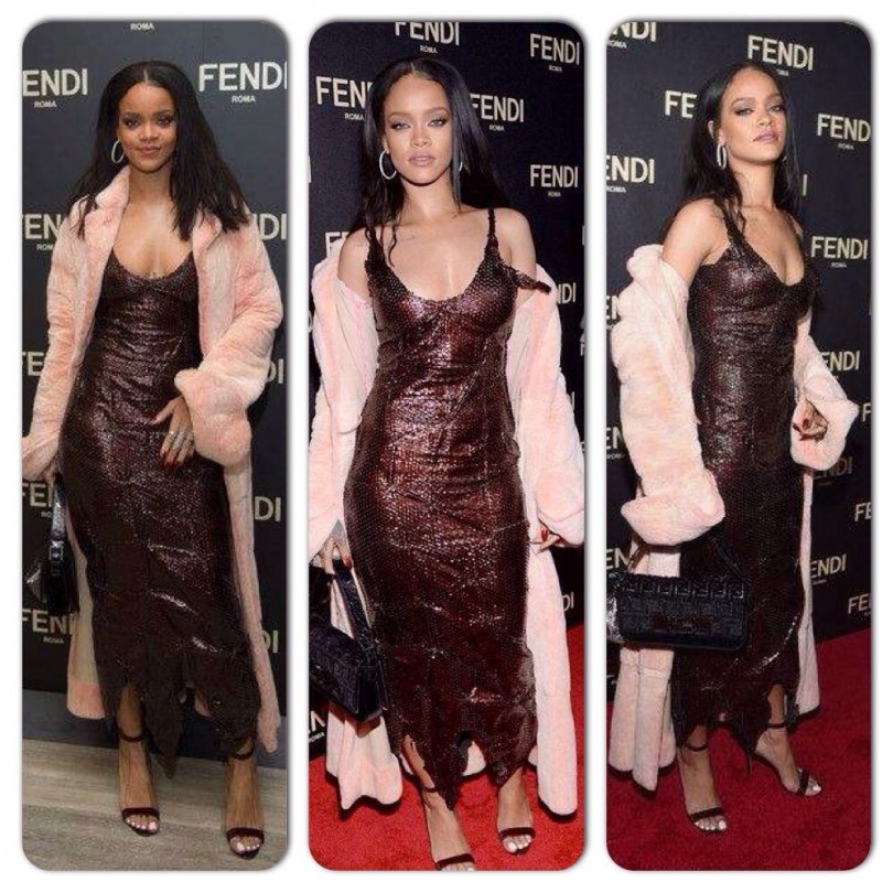 A son tour, Rihanna était la reine de la soirée organisée en partenariat avec FENDI pour personnaliser des baguettes tout ceci en faveur de la fondation Clara Lionel de Rihanna créée en la mémoire des grands-parents de Rihanna, Clara et Lionel Brathwaite.