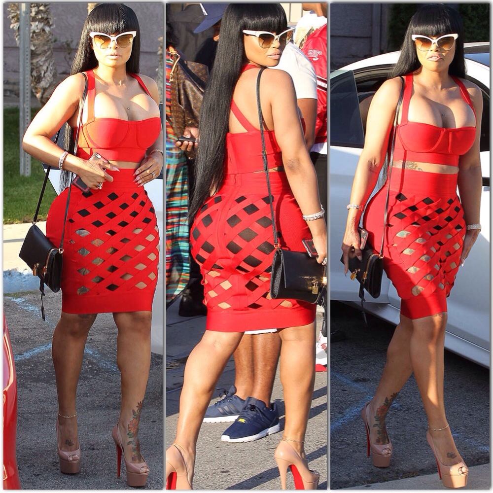 Pour l’occasion, Blac Chyna portait une mini robe rouge avec des trous dans tous les sens. Ses atouts féminins étaient dissimulés sour un jupon noir. Elle a assorti cette robe d’une paire d’escarpins ouverts sur les orteils de couleur chair.
