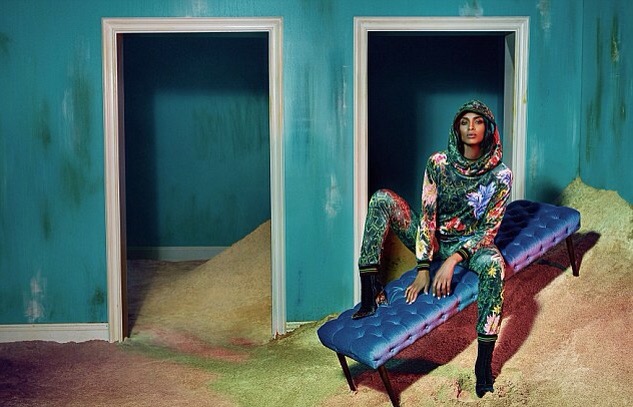 Elle pose dans plusieurs pièces, portant plusieurs modèles de la nouvelle collection, des ensembles pantalons, des robes…