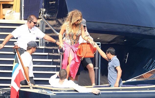 Alors la maman de Morocco et Monroe descendaitnles marches d’escaliers du grand yatch, Mariah Carey a failli tomber. Elle a été sauvér par les gros bras d’un garde du corps. Son homme regardait la scène tout en savourant une cigarette.