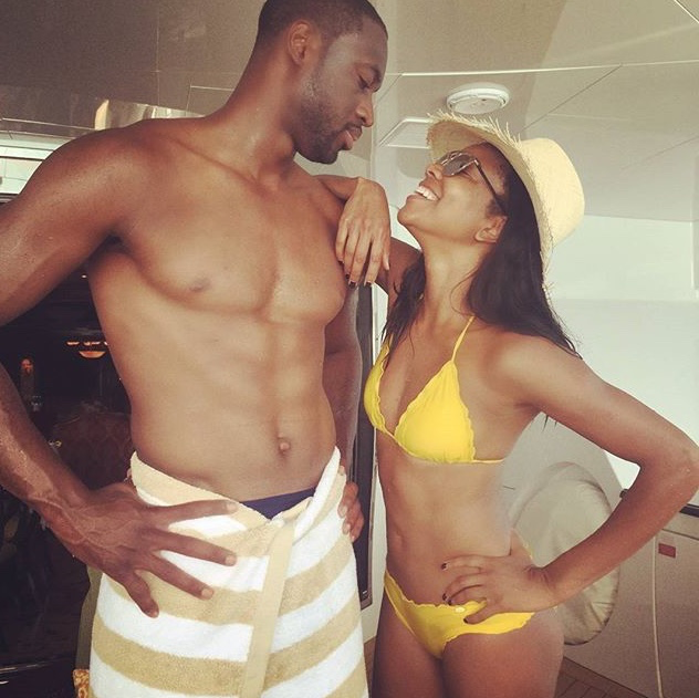 Cette dernière a mis une photo de son lieu de vacances, portant un bikini blanc en compagnie de son sublime mari, joueur de NBA Dwyane Wade: