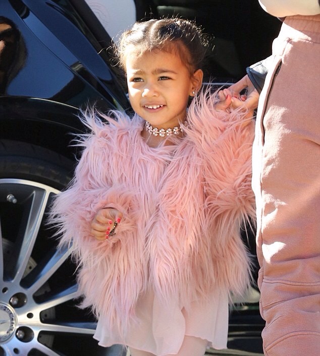 La petite North West ressemblait à une petite princesse. Elle portait un manteau rose en fausse fourrure, des collants roses, un tutu et une paire de ballerines de la même couleur.