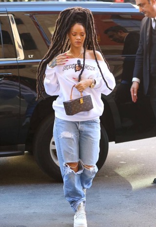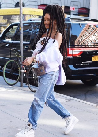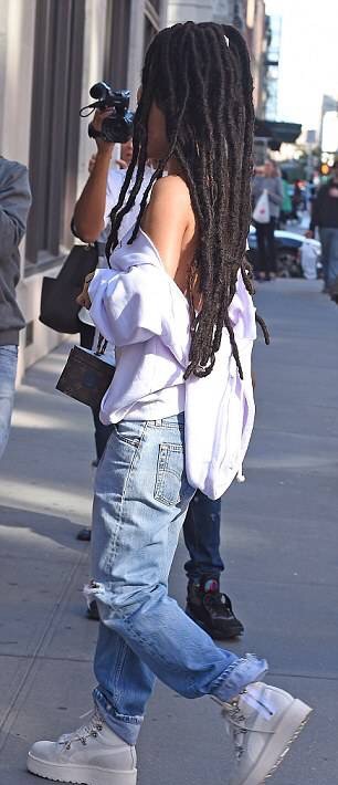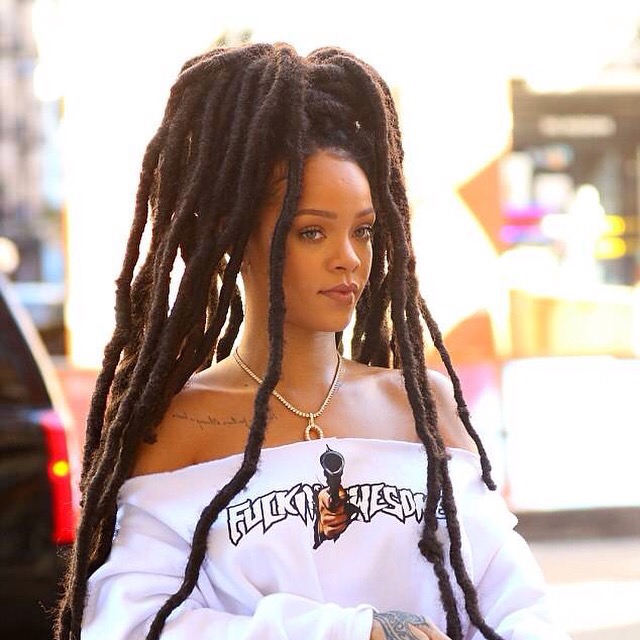 yesterday, she went out witn lomg dread locks. She had an uncommon street style outfit.