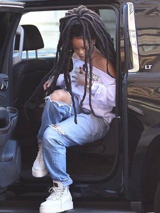 yesterday, she went out witn lomg dread locks. She had an uncommon street style outfit.